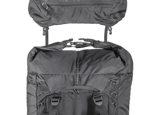 Le sac à dos se compose d’un rabat amovible doté d’une poche zippé intérieure et une extérieure, de deux poches latérales extensibles, d’un compartiment pour la poche à eau et de quatre cordons avec de nombreux points d’attaches de disponibles. Le volume intérieur se ferme par enroulement avec fermeture éclair, et cette réhausse offre un volume supplémentaire de 10 litres.