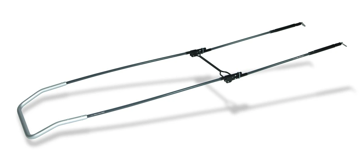 Le brancard standard est prévu pour tracter une pulka Fjellpulken. Il est compatible avec tous les modèles de la marque norvégienne. Il se fixe d’un côté, au niveau des boucles du harnais de trait et de l’autre sur les fixations de la pulka. Ce modèle est pliable (120 cm). Lorsqu’on le déplie, il mesure 210 cm. Il est doté d’un système simple de verrouillage pour éviter qu’il ne se referme pendant la traction. A l’extrémité, côté harnais, le brancard dispose de 2 ressorts qui servent d’amortisseurs et qui absorbent légèrement les mouvements aller/retour de la pulka.
