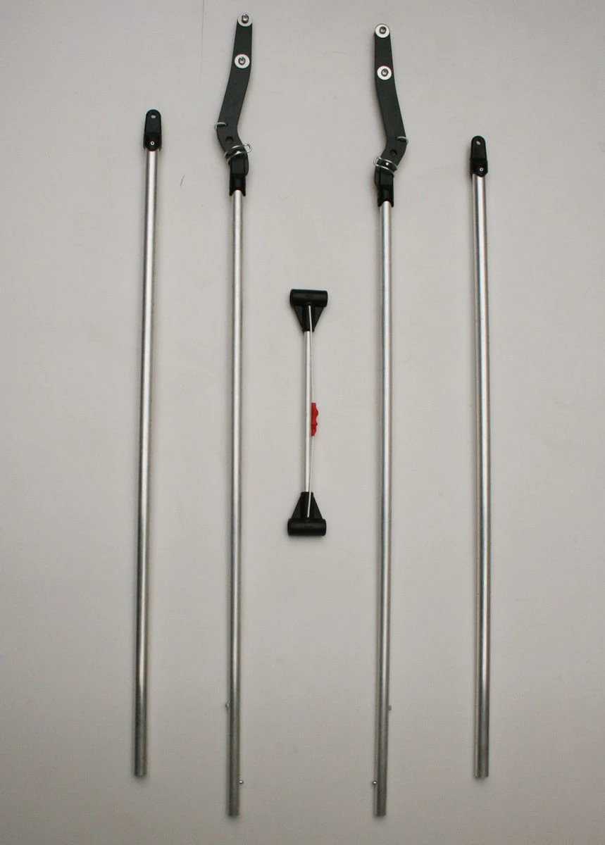 Le brancard est composé de 2 pièces plates en plastique acetal qui se fixent d’un côté sur le bac pulka Expedition et de l’autre sur les tubes en aluminium. Ce plastique résiste à des températures de -40°C et aux UVs. L’arbre de traction est composé, de chaque côté, de 2 tubes en aluminium et d’un axe en T qui se fixe entre eux pour éviter la torsion. Les tubes de 19mm et de 22mm de diamètre s’emboîtent l’un dans l’autre. L’épaisseur des tubes en aluminium est de 1,5mm.