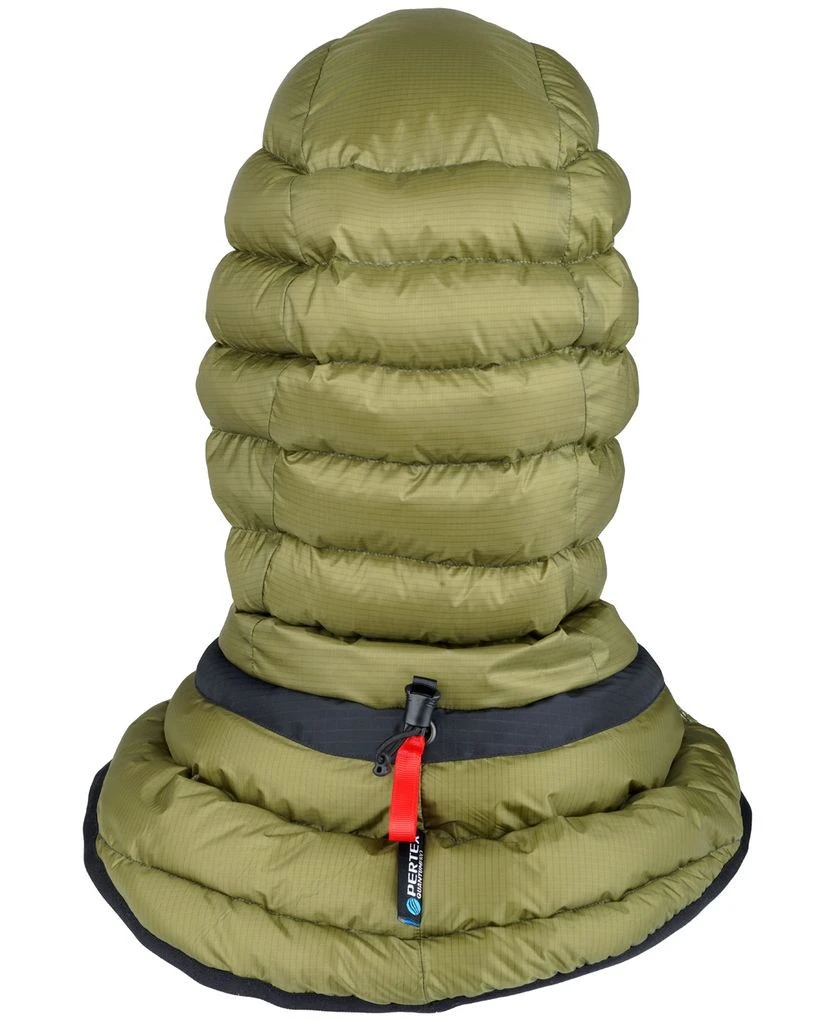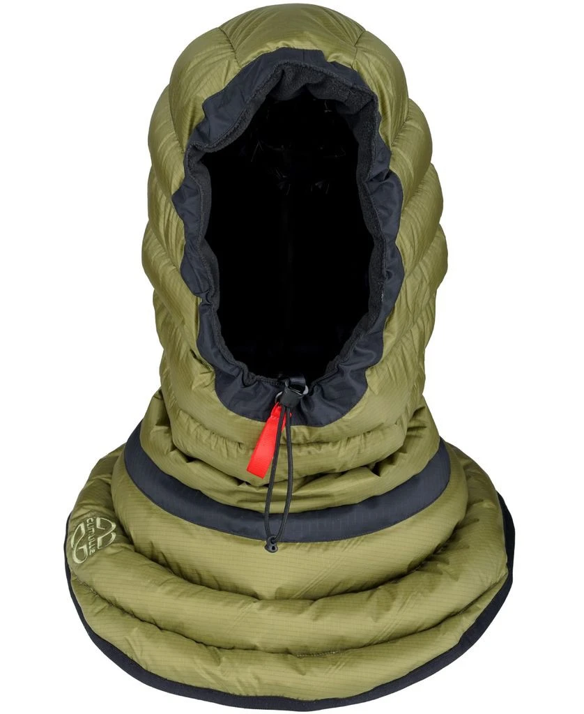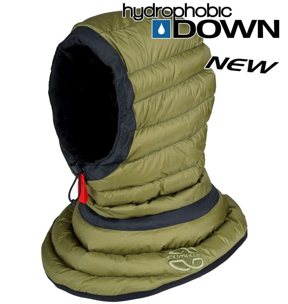 Le Sleeping Down Hood de Cumulus est un mixte entre une cagoule, une capuche amovible, un bonnet-tour de cou. Ultraléger, il renferme 50 g de duvet d’oie polonais 850 cuin hydrophobe. Il est réalisé en Pertex Quantum Pro sur l’extérieur, un tissu déperlant, très respirant et qui est étanche aux fuites de duvet. L’intérieur est en Pertex Quantum plus agréable au touché et le pourtour du visage ainsi que le cou sont molletonnés. Un réglage autour du visage et un autour du cou permettent un bon maintien de la cagoule.