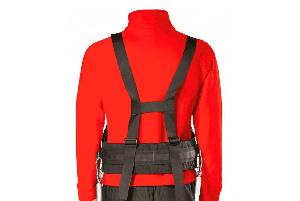 - la traction se réalise au niveau des hanches et que les sangles servent à répartir la charge sur le haut du corps.