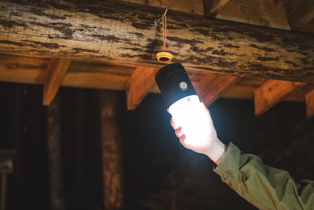 Cette lampe est conçue avec un système de suspension par lanière magnétique qui assure une fixation et un retrait facile, dans la tente, à un arbre… Sa large base permet de la poser sur une surface plane : table, sol pour un usage plus classique.