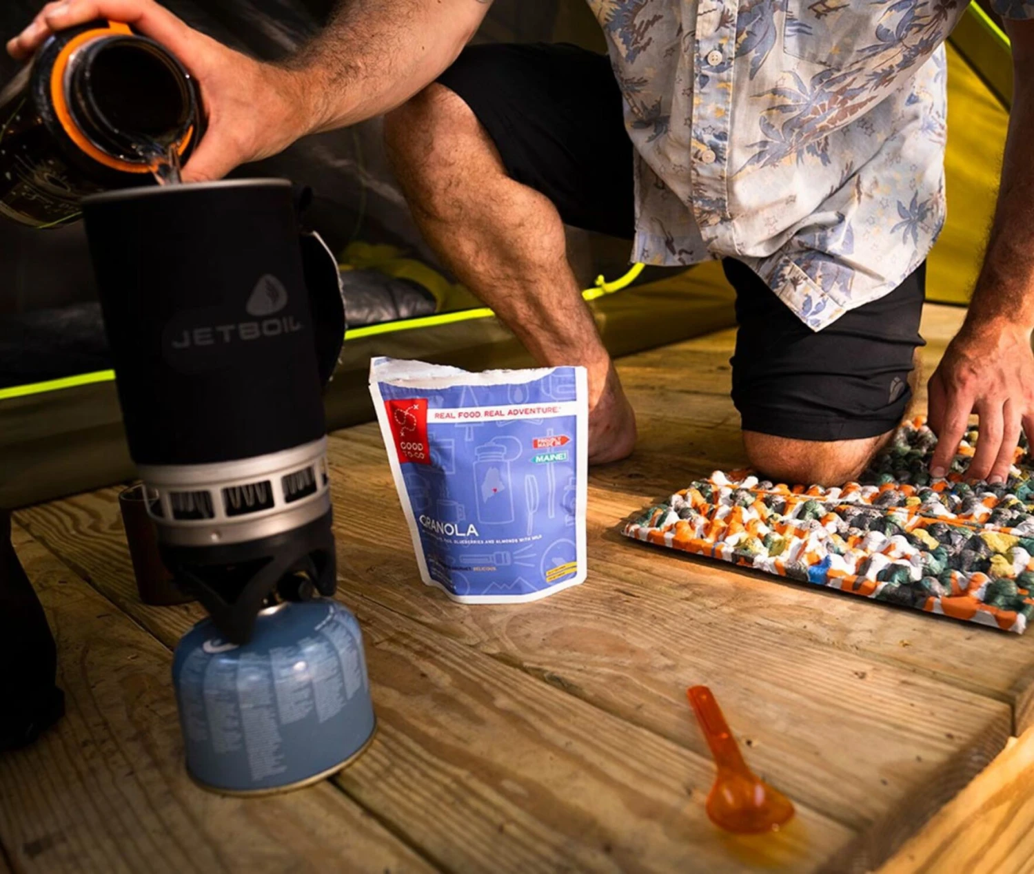 Siège en mousse léger, rapide et facile à utiliser. Se glisse facilement dans un sac à dos.