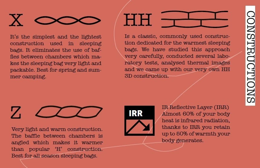 Il est garni de 160 grammes de duvet de canard blanc polonais de 700 cuin, répartition 90/10. Cela lui confère une température de confort de 12°C. Sa construction en X, lui permet d’atteindre se poids infime. L’enveloppe en tissu Super Light Toray Airtastic Shell apport un grand confort.