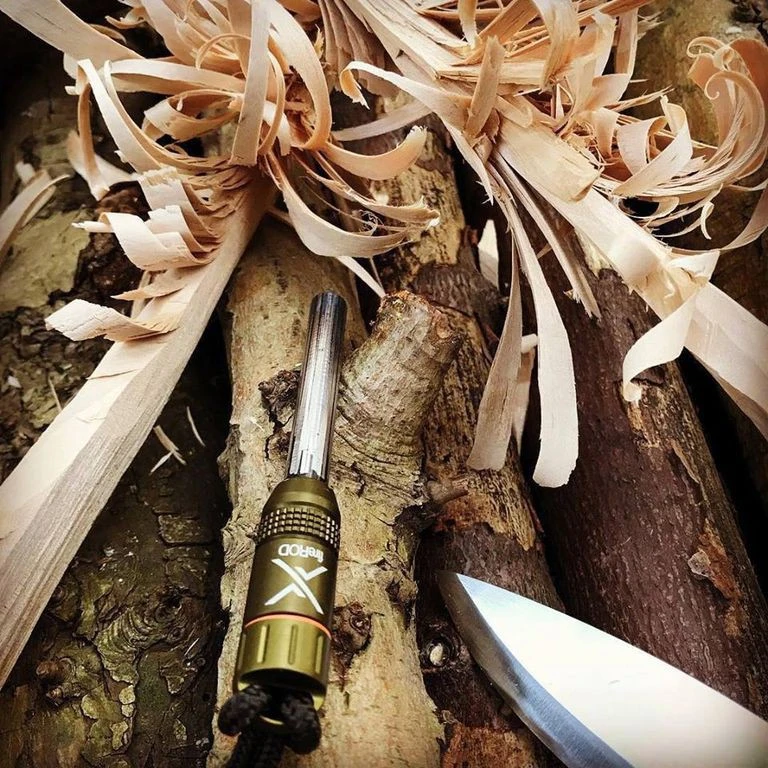 La tige en ferrocérium FireRod de marque américaine Exotac est légère, compacte tout en offrant une bonne prise en main. Dans l’embout se cache une petite capsule permettant de stocker des allume-feux QuickLight. Avec l’aide d’un couteau utilisé comme grattoir et d’amadous, elle permet d’allumer par friction un feu dans toutes les conditions météo.