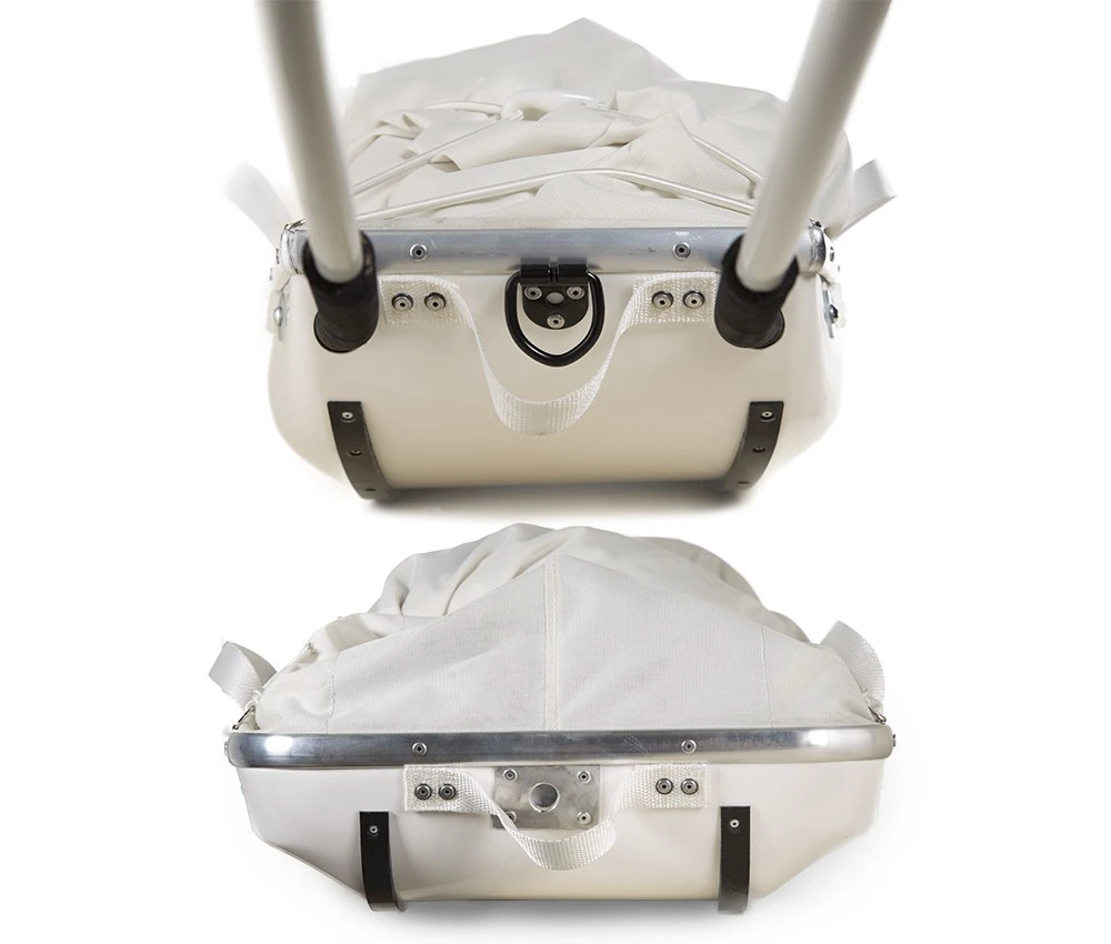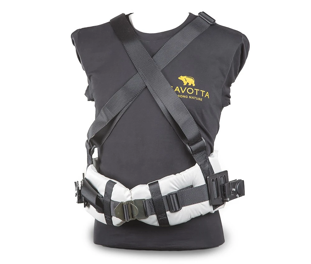 Ce traineau de transport est facile à tirer grâce à sa barre de traction entrecroisée qui se connecte sur le harnais de traction à l’aide de 2 cordes.