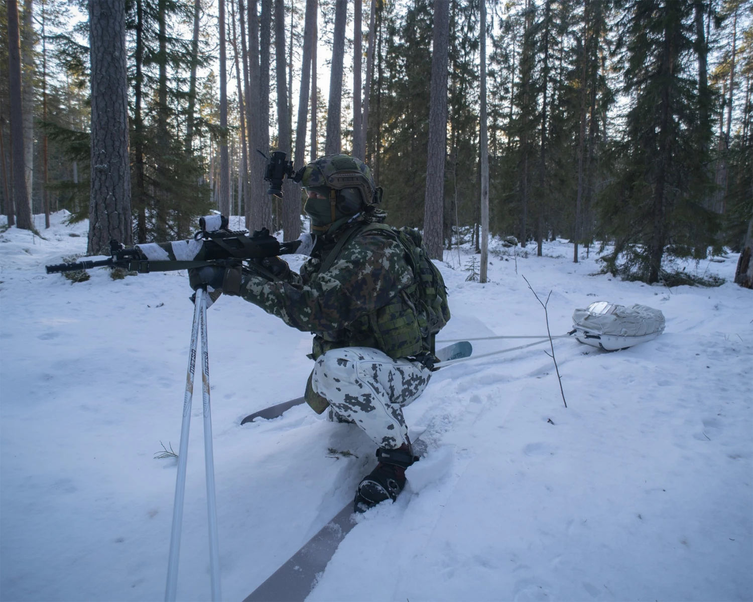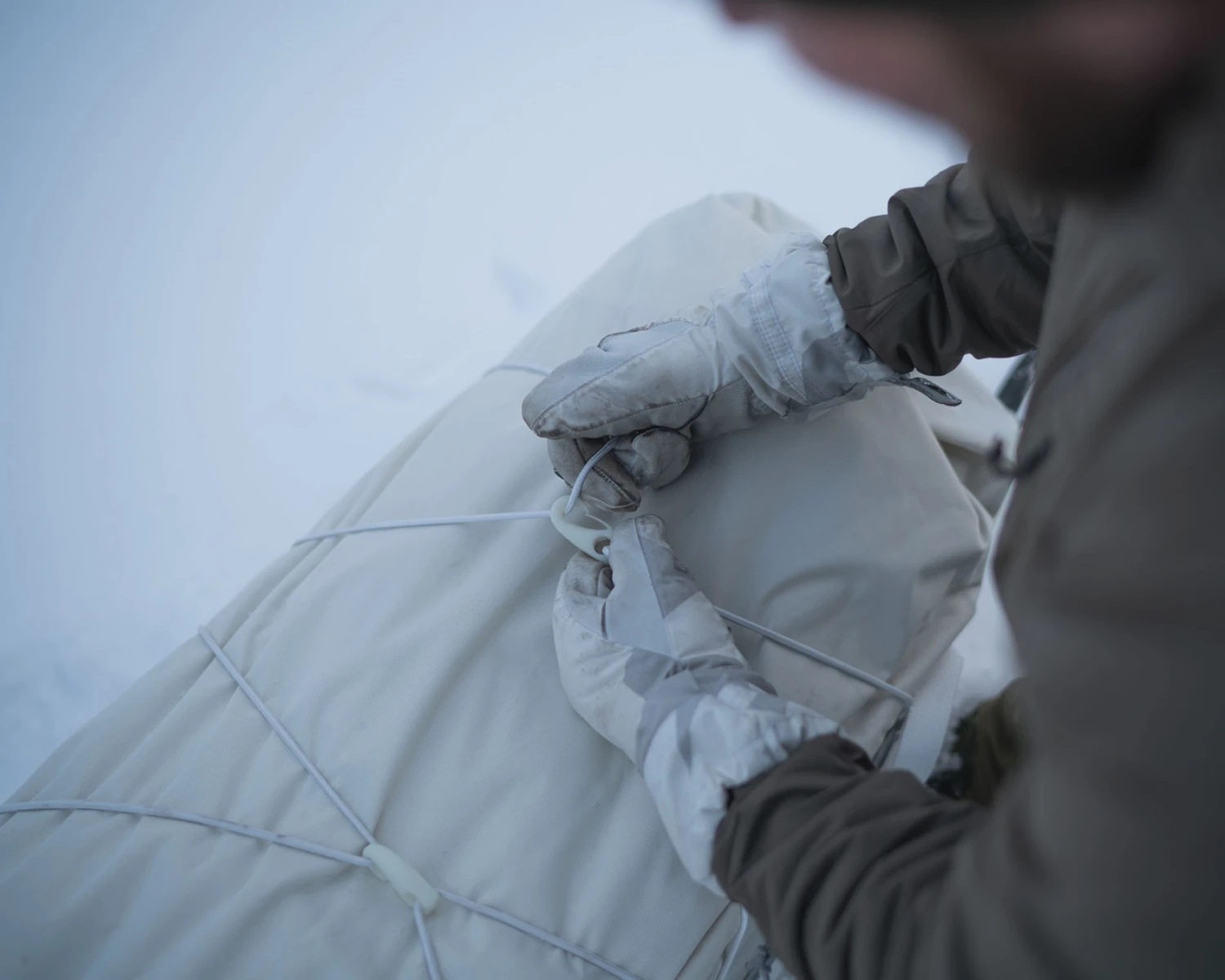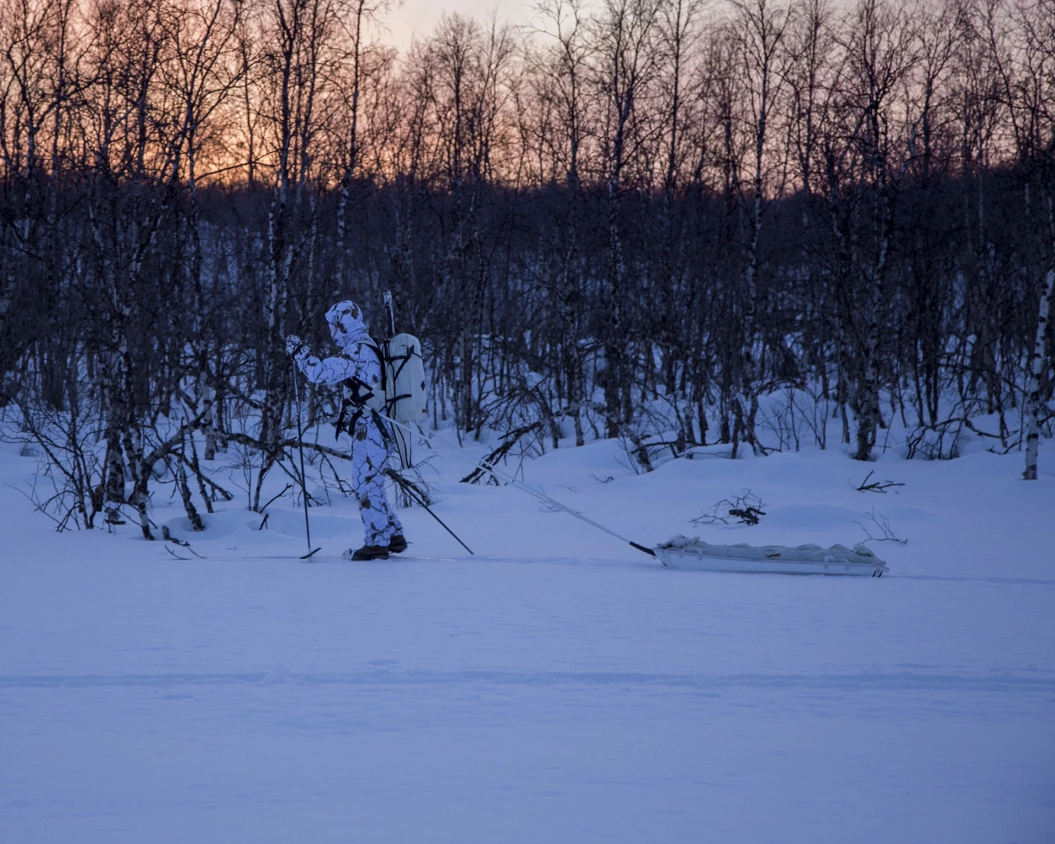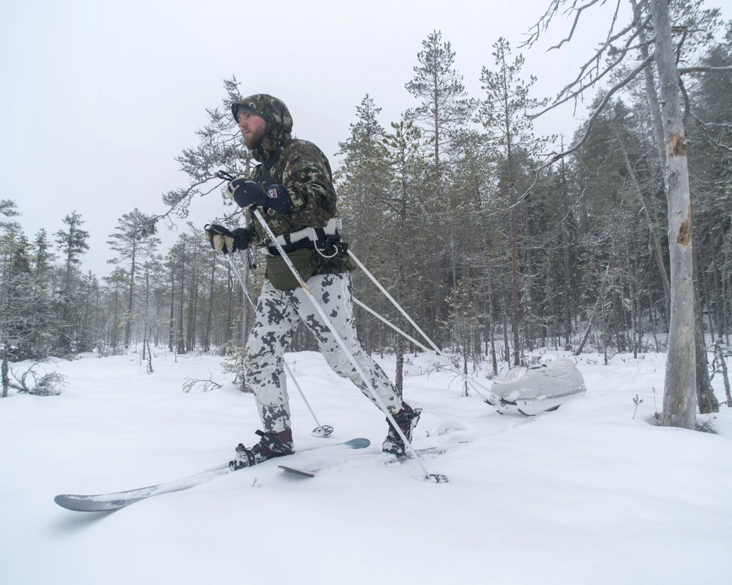 Cette pulka militaire a été développée en coopération avec les gardes-frontières finlandais. Ce traîneau en fibres de verre est renforcé sur la partie supérieure par une bordure en aluminium. Aux extrémités, elle dispose de 2 poignées de portage ainsi que de 4 sangles sur les côtés. A l’avant, une boucle en métal permet de tracter la pulka (avec une motoneige par exemple).