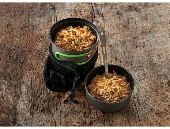 Le Risotto aux légumes du jardin de Trek’n Eat est un succulent mélange de riz, de soja et de légumes : carottes, poireaux, céleri, oignons. Plat lyophlisé végétarien complet et nourrissant.