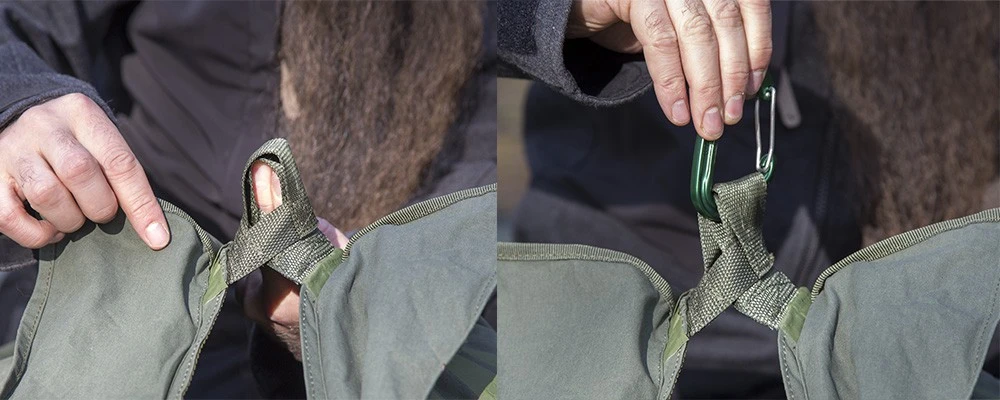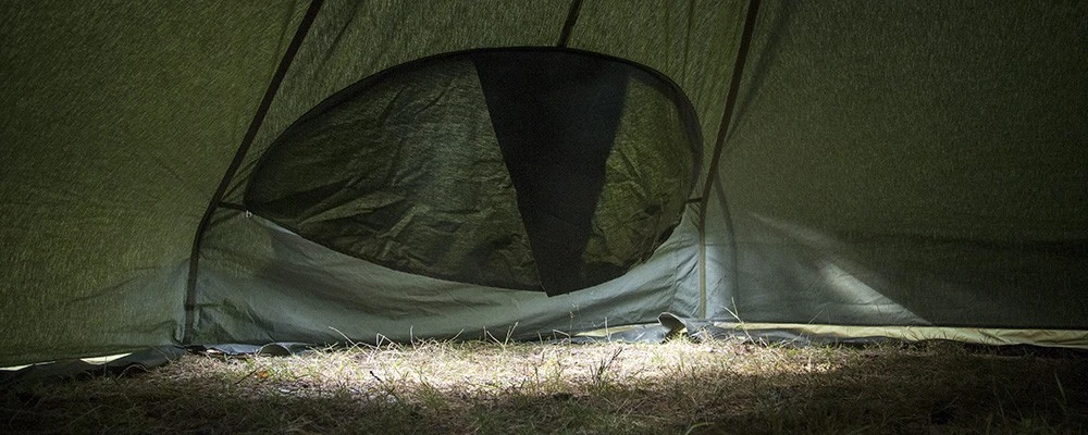 La Door Pièce comprend une porte spécifique (On descend dans la tente, pas besoin de ramper) et un système de tissu suspendu qui permet de conserver la chaleur à l’intérieur de l’abri. La Door Piece dispose aussi de la sortie du tuyau pour poêle à bois.