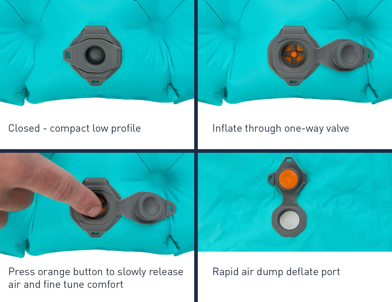 Au niveau de la tête, l’attache PillowLock permet de fixer un oreiller Aeros Sea to Summit à votre matelas pour le tenir en place toute la nuit. (Oreiller vendu séparément).