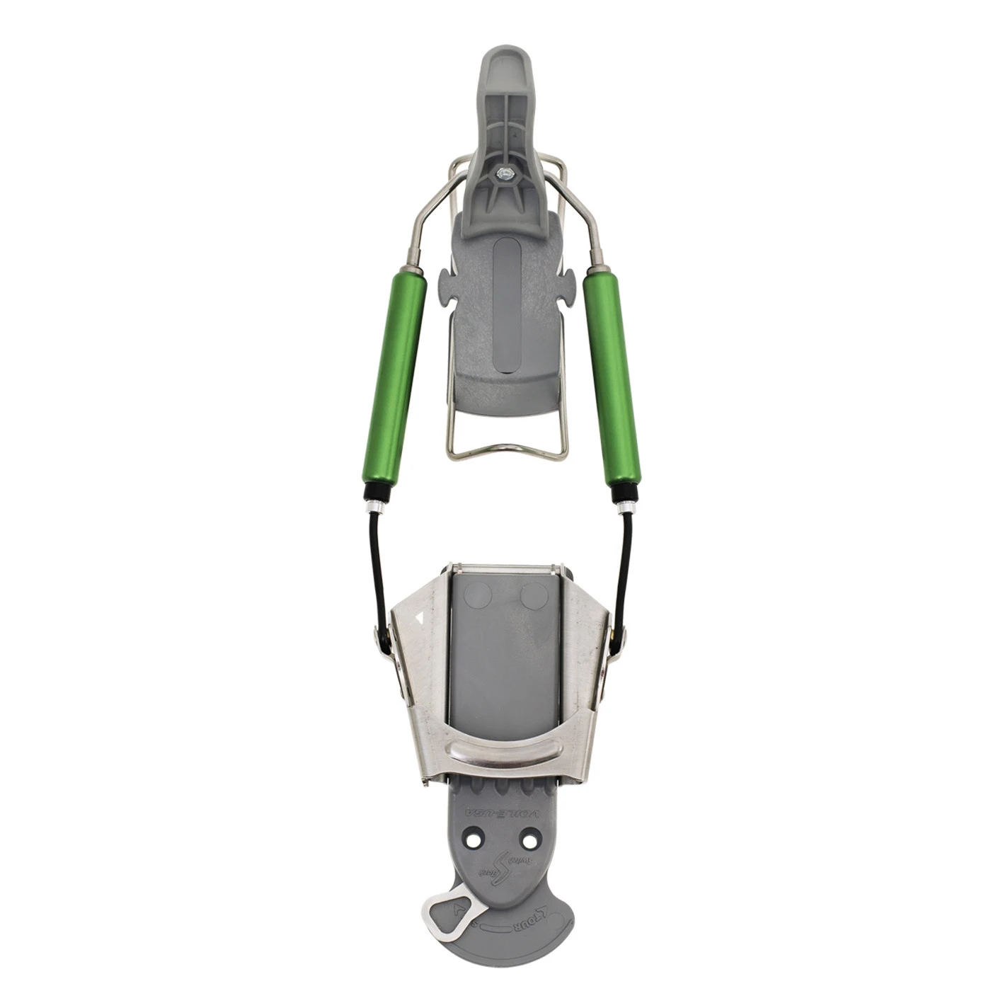 Contrairement aux autres modèles de Voilé USA, ces fixations ne comportant pas de 3-Pin : elles sont dotées à l’avant d’un étrier monopièce très large en acier inoxydable. Elles sont également composées deux cartouches ajustables qui font la liaison avec l’arrière de la chaussure tout en laissant le talon libre, à la montée comme à la descente. En pratique, ces cartouches offrent un excellent maintien latéral et permettent un meilleur contrôle des skis : ce système est éprouvé depuis plus des années dans le monde du télémark.